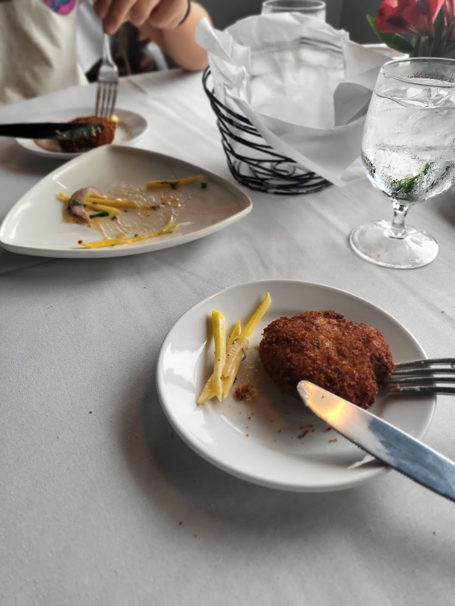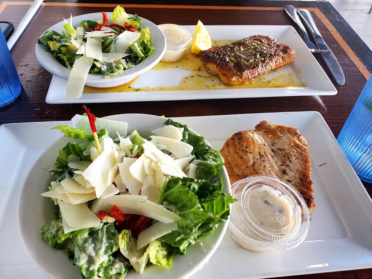 Definitely a nice spot at the canal. Feeding the fish a plus for family with kids. Food is ok but not a 4 or 5 star. Had better chowder in other places. Fish was grilled correctly. Our server Marle was correct but not super nice. Don’t go there with expectations too high. Cocktail was delicious.