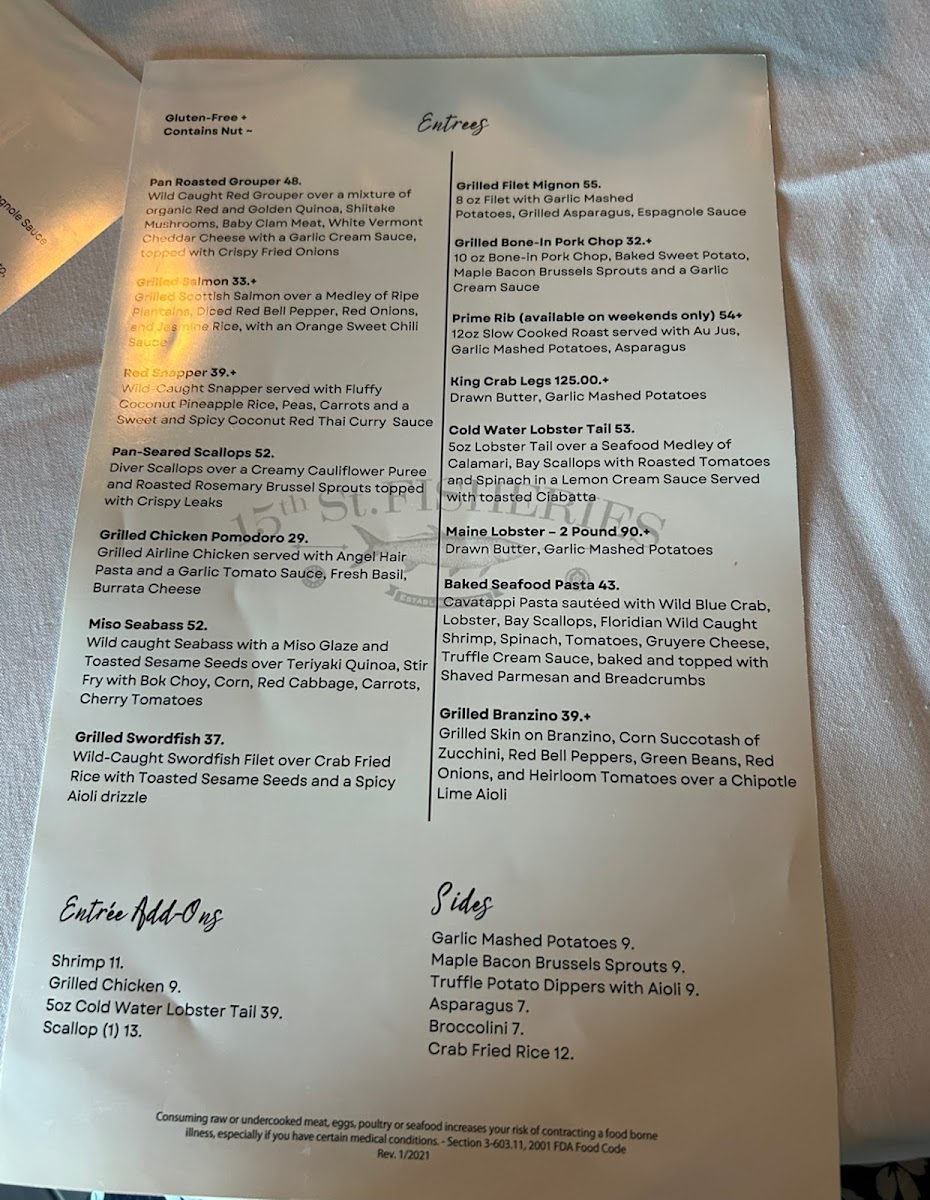 15th Street Fisheries Menu