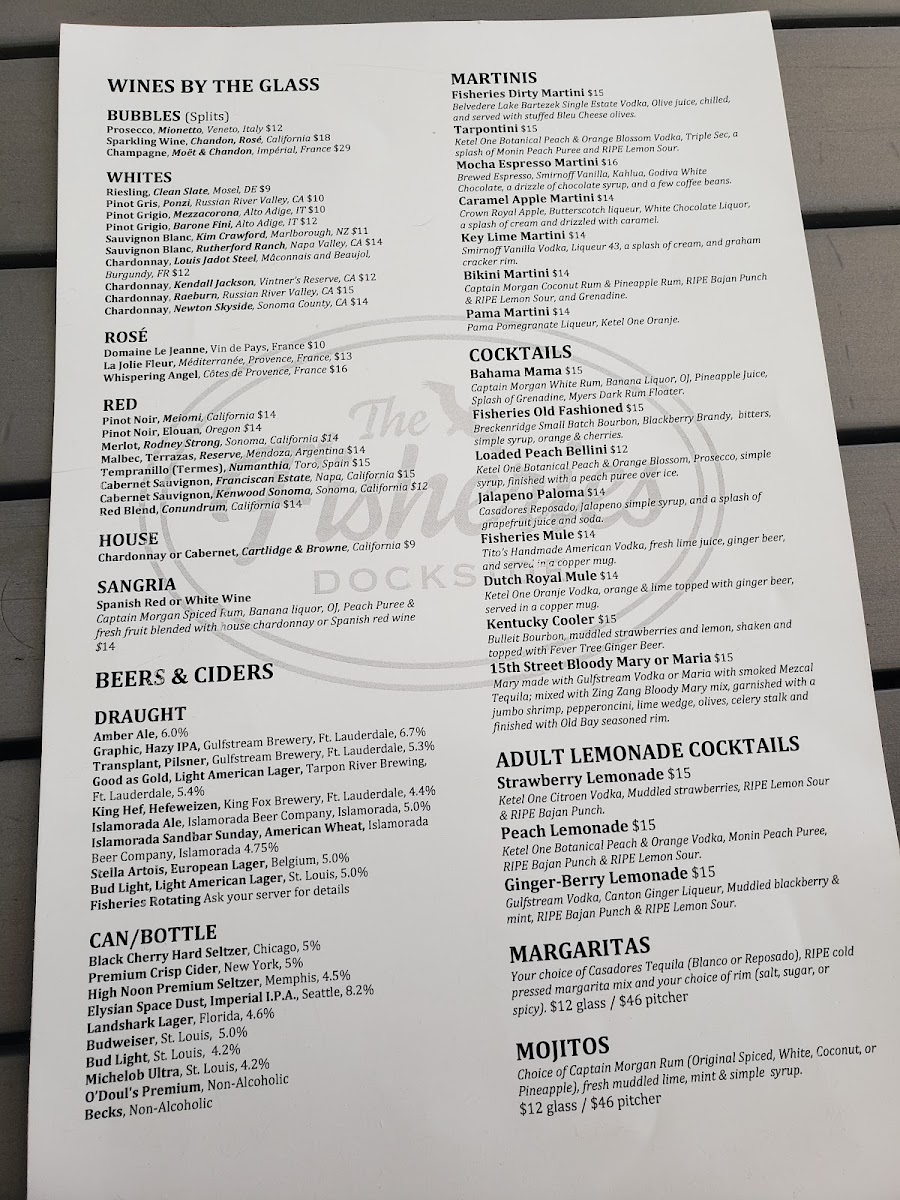 The menu at 15th Street Fisheries offers a welcoming blend of fresh seafood and classic American fare, presented in a way that feels both approachable and thoughtfully crafted. Whether you’re stopping in for a casual lunch or settling in for a relaxed dinner by the water, the selection fits the easygoing yet vibrant marina atmosphere.